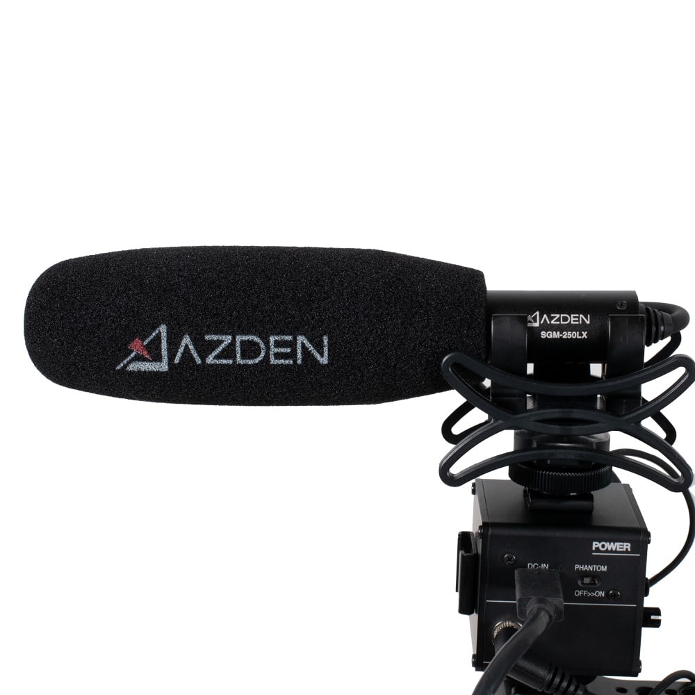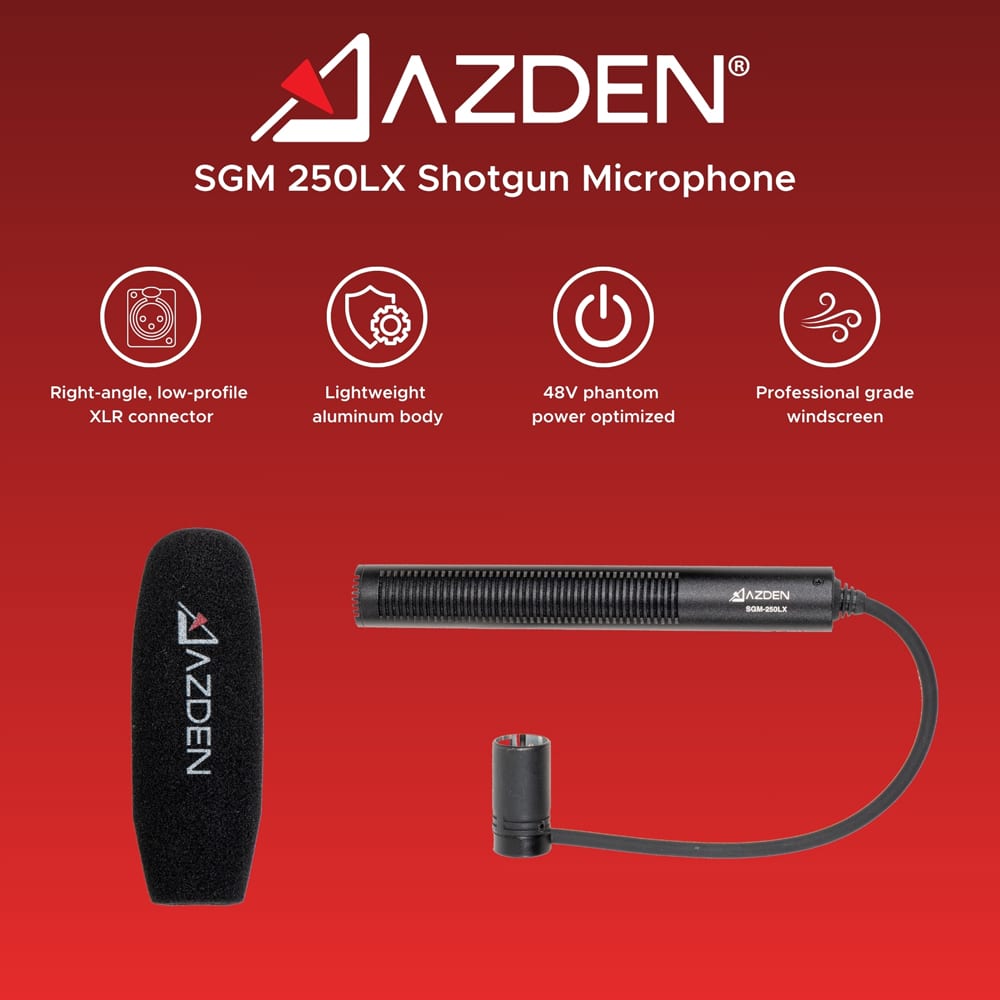 The Azden SGM-250LX is a professional compact shotgun microphone built for filmmakers, broadcasters, and content creators who demand broadcast-quality audio in a lightweight, portable package. Its industry-first right-angle, low-profile XLR connector sets it apart—reducing protrusion by 35mm and routing cables neatly to the side. This smart design not only makes your rig easier to handle and store, but also delivers a cleaner, more professional look on set.