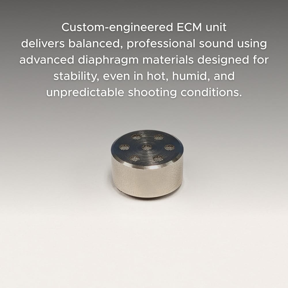 Custom-engineered ECM unit delivers balanced, professional sound using advanced diaphragm materials designed for stability, even in hot, humid, and unpredictable shooting conditions.